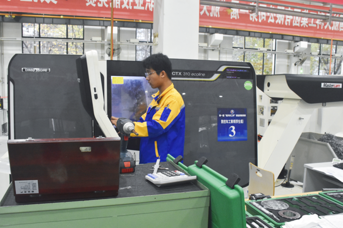 技师学院选手张晋萁获得数控车工(高端数控编程与加工技术)项目学生组第一名(一等奖);王博获加工中心操作调整工(五轴联动加工技术)项目学生组第五名(二等奖);王智翔获增材制造设备操作员(数字化设计与增材制造)项目学生组优胜奖。此外,技师学院毕业生胡旺龙、康文轩、李耀东分别代表航天科工各企业参赛,均取得优异成绩。